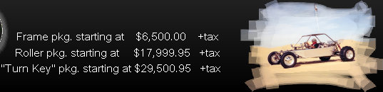 includes; all of the above plus, all body work, CNC pedals, Howe 2.5 power rack, Fox shocks, Fox bypass shocks, springs, PRP competition seats, 934 mib board rear hubs w/ 4 piston calipers,2" front hubs and brakes, and Bead lock wheels w/ tires [sand or dirt]